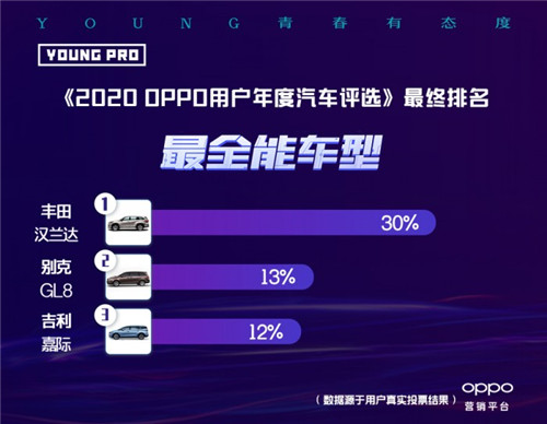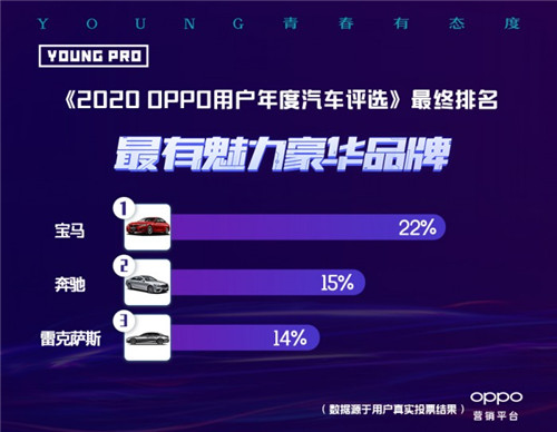 基于此背景,OPPO營銷平臺發(fā)起“YOUNG青春、有態(tài)度——2020 OPPO用戶年度汽車評選”活動。本次汽車評選共設置九大獎項,分別為:最潮家轎、最酷SUV、最全能車型、最夢想車型、最智能車型、最超值車型、最看好的新能源品牌、最有魅力豪華品牌、最信賴的燃油車品牌。