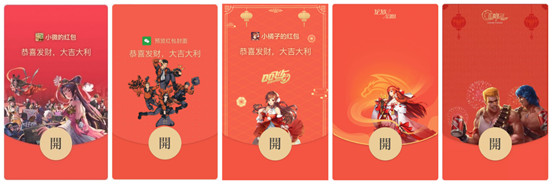 其中,一群來(lái)自北美的留學(xué)生制定了微信紅包封面送給天美工作室,14 套天美游戲角色在紅包封面輪番登場(chǎng),祝福語(yǔ)在頁(yè)面中快速滾動(dòng);和平精英結(jié)合游戲人物形象,在封面發(fā)出“大吉大利,一起HAPPY”的祝福;QQ飛車(chē)同樣推出IP人氣角色小橘子和鏡的封面紅包,限量放送;作為一款由超強(qiáng)網(wǎng)絡(luò)小說(shuō)改編制作的游戲,龍族幻想的紅包封面基于核心 IP 繪梨衣小姐姐,進(jìn)行限量發(fā)送;魂斗羅微信定制紅包封面,為魂斗羅管家聯(lián)合微信平臺(tái)給超核用戶定制的幸運(yùn)專(zhuān)屬禮。紅包封面限量,通過(guò)幸運(yùn)掉落和先到先得的方式發(fā)放。