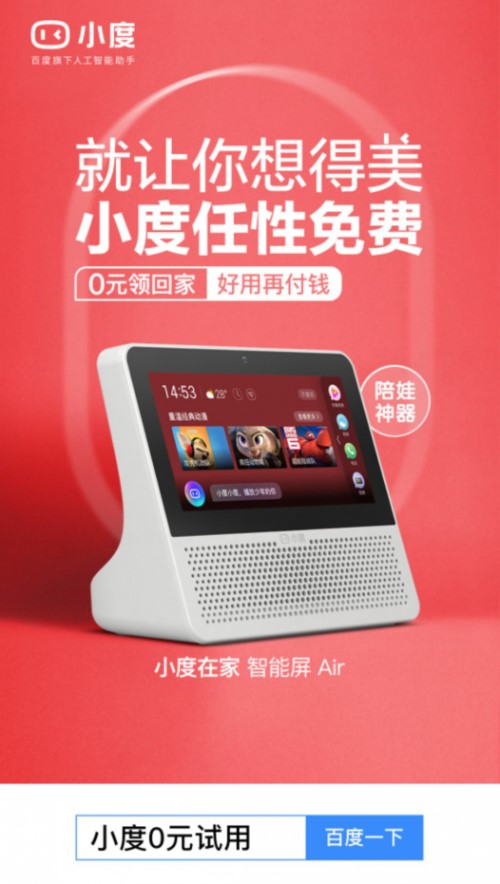 值得一夸的是,本次小度官宣將提供數(shù)萬(wàn)臺(tái)新品——小度在家智能屏Air,供通過資格審核并成功提交訂單的家庭免費(fèi)試用30天。一舉解決了產(chǎn)品試用期過短、普通人參與難的問題,同時(shí)還無(wú)需提交任何產(chǎn)品使用報(bào)告或反饋。免費(fèi)試用30天期限內(nèi),用戶可自由決定購(gòu)買或退還產(chǎn)品。退貨運(yùn)費(fèi)將由小度商城承擔(dān)。如此大規(guī)模、長(zhǎng)周期的新品試用活動(dòng),實(shí)屬行業(yè)首創(chuàng) 。