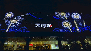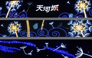 映入眼簾的,是天河城的東、南、西三個(gè)大門的門頭燈飾畫描繪了一片蒲公英的海洋。蒲公英輕盈幻化,隨風(fēng)飄蕩,最終它飄向了歸家的方向,行人至此,感受著天河城散發(fā)著的溫暖與愛的氣息,就像回到了家的懷抱中,無與倫比的購物體驗(yàn)就從這里開始。
