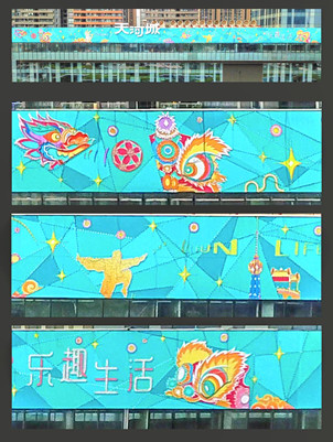 將幻彩薄膜置于天河城的反光玻璃外墻,周邊景色在玻璃的陽光反射下,映出迷幻的色彩。隨著天色的不斷變幻,外墻呈現(xiàn)出千變?nèi)f化的魔幻景致,為天河城強(qiáng)勢吸“睛”!
