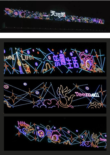 基于地區(qū)歷史文化特色、城市特點(diǎn)進(jìn)行設(shè)計(jì)、并圍繞商業(yè)綜合體整體營銷策劃進(jìn)行亮化工程的全局把控,2019年9月,南海天河城與夜空彩虹合作,將這里打造成一個(gè)“天上街市”!