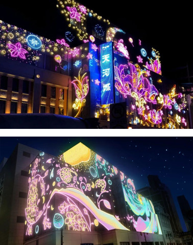 夜景換裝秀!夜空彩虹為天河城打造最美藝術(shù)燈畫