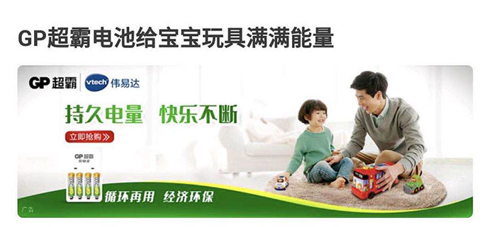 據(jù)調(diào)查,專注技術(shù)研發(fā)超過50多年的電池專家GP超霸最近也玩起了跨界營銷。GP超霸一直瞄準(zhǔn)高品質(zhì)生活的母嬰消費(fèi)群體,而偉易達(dá),作為一家擁有40年歷史的國際電子教育玩具品牌,近年亦憑借優(yōu)質(zhì)嬰幼兒產(chǎn)品線,成功拓展電商渠道。電子玩具本身對電池質(zhì)量與使用條件的要求都非常高,日常消耗數(shù)量也十分巨大,這些因素使得GP超霸和偉易達(dá)形成了一種不謀而合的默契。在此契機(jī)下,GP超霸迅速抓住機(jī)會,尋求推廣形式的創(chuàng)新改變,嘗試跨界合作。雙方品牌為此打通電商渠道,實(shí)現(xiàn)流量互換,帶給消費(fèi)者更優(yōu)質(zhì)的購買體驗(yàn),大大縮短了不同店鋪之間的購買鏈條。