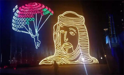 作為國內(nèi)最早開創(chuàng)柔性燈飾畫的企業(yè)——夜空彩虹不僅把燈飾畫和燈飾字做成了一個(gè)行業(yè),拿下了一個(gè)又一個(gè)地標(biāo)性建筑、大型活動(dòng)的燈飾亮化項(xiàng)目,還把生意延伸到了阿拉伯沙漠的夜空,裝飾國王的頭像。