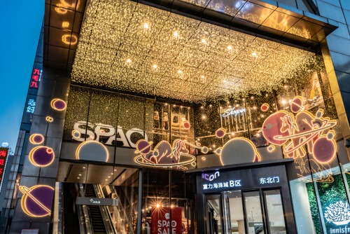 (2019年,夜空彩虹用星星燈為合肥萬象匯所做星空跑道)