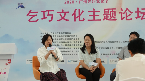 其中,喬國玲女士以自身創(chuàng)辦的“女性態(tài)度展”,講述了與廣州乞巧文化節(jié)的情緣,并提出了“藝術(shù)活動(dòng)有利于推動(dòng)非遺文化與各行業(yè)融合創(chuàng)新”的看法。梁永標(biāo)先生則從自身經(jīng)歷出發(fā),講述自己對于傳統(tǒng)文化保護(hù)和創(chuàng)新的看法,提出了“開發(fā)非遺文化體驗(yàn)半成品”的構(gòu)想。