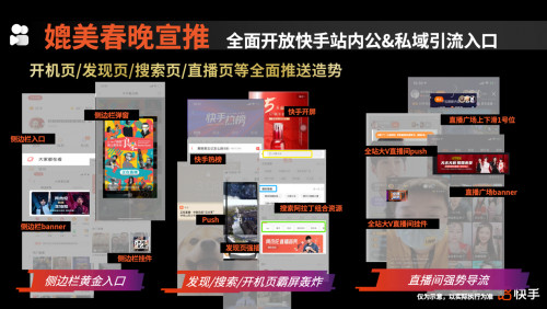 此外,快手還將全面開放站內(nèi)公域、私域流量入口,通過站內(nèi)全面造勢、明星達(dá)人接力直播、核心城市地標(biāo)覆蓋等多維傳播打造媲美央視春晚項目的360度立體宣推,創(chuàng)造流量之月、狂歡之夜。