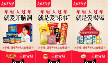 年輕消費(fèi)者參與到本次的營(yíng)銷活動(dòng)中,買到的不僅僅是產(chǎn)品,更是一種重找新年氛圍的快樂(lè)體驗(yàn)。天貓食品精準(zhǔn)觸碰目標(biāo)消費(fèi)者心中的“點(diǎn)”,引領(lǐng)年輕人購(gòu)置尖端年貨,掀起熱捧新年俗的潮流,抓住80后人群愛(ài)“玩”愛(ài)“個(gè)性”的特質(zhì),將微博、海報(bào)、視頻的玩趣新年味與年貨節(jié)入口相結(jié)合,直接轉(zhuǎn)化為訂單,大大縮短購(gòu)買轉(zhuǎn)化的中間流程。成功的新年?duì)I銷策劃將巨大的聲量與流量均轉(zhuǎn)化為實(shí)實(shí)在在的銷量盈利,可見(jiàn),天貓對(duì)節(jié)日營(yíng)銷的互聯(lián)網(wǎng)創(chuàng)新玩法把握始終走在同行業(yè)的前端。