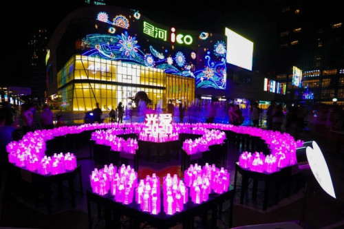 耗時(shí)僅一夜的搭建拼裝,在9月20日下午,“光愛2020”帶著100份來自廣州的美好祝福和愿望,正式出現(xiàn)在龍華星河iCO東廣場(chǎng)亮燈儀式現(xiàn)場(chǎng),吸引不少深圳市民駐足觀看。