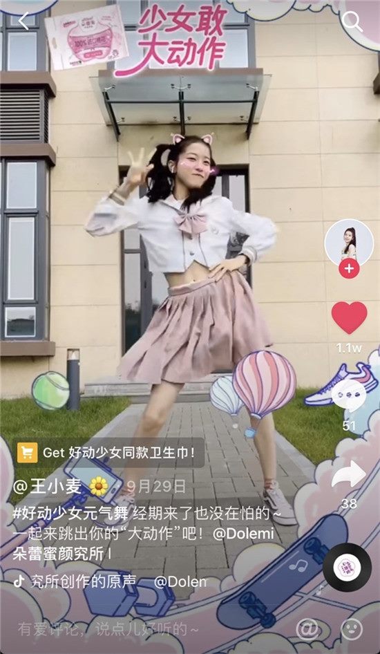 隨著創(chuàng)造營2020、乘風(fēng)破浪的姐姐等節(jié)目成為熱點(diǎn),2020注定是女團(tuán)元年;女團(tuán)唱跳俱佳,代表著少女的青春、活力、美好;以此為切入點(diǎn),朵蕾蜜邀請三位元?dú)馍倥俺蓤F(tuán)出道“,以時(shí)下流行的唱跳形式+品牌原創(chuàng)主題曲,打造了品牌首支MV,演繹了經(jīng)期的另一種狀態(tài):少女敢大動(dòng)作。