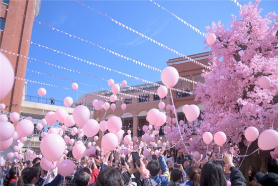 ▲原創(chuàng)IP“粉紅節(jié)”在鐘樓廣場放飛粉紅氣球,大家紛紛舉起相機(jī)記錄“打卡”瞬間