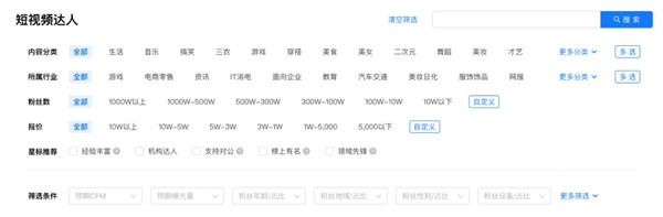 針對訴求不同、合作意向不同的客戶,磁力聚星可在不同維度上滿足客戶的篩選推薦需求。例如對于內(nèi)容合作方向及預(yù)算相對明確的客戶,磁力聚星支持客戶通過達(dá)人廣場豐富的標(biāo)簽來篩選達(dá)人。