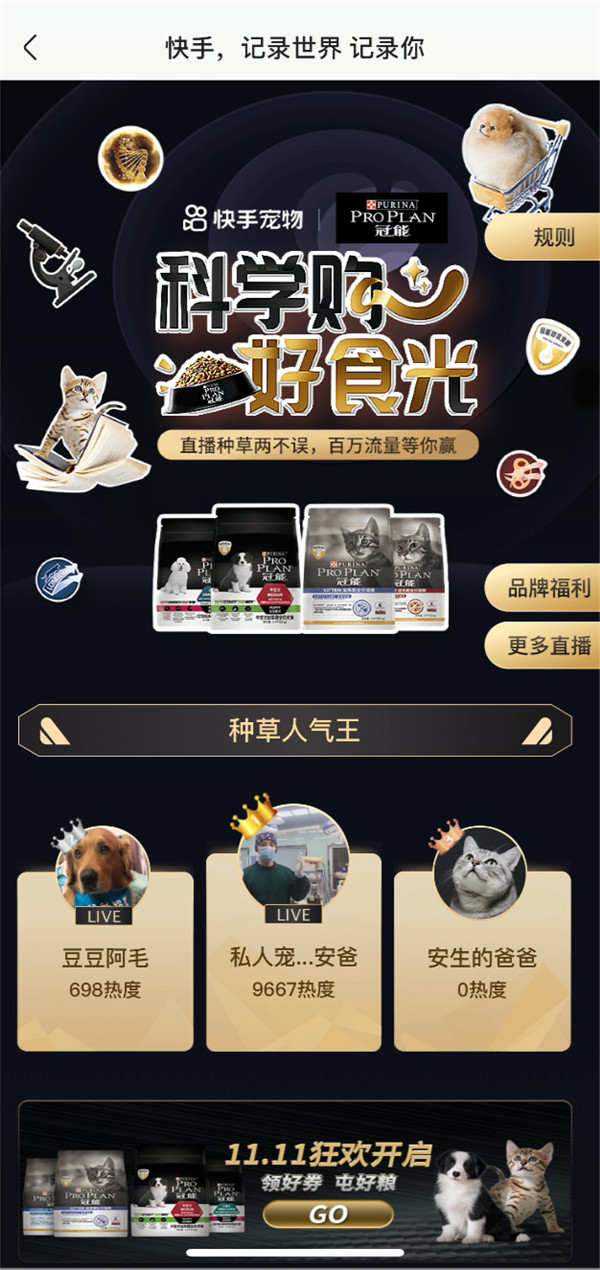 百萬寵物老鐵圍觀 快手雙11聯(lián)袂普瑞納冠能 塑造寵物直播新模式