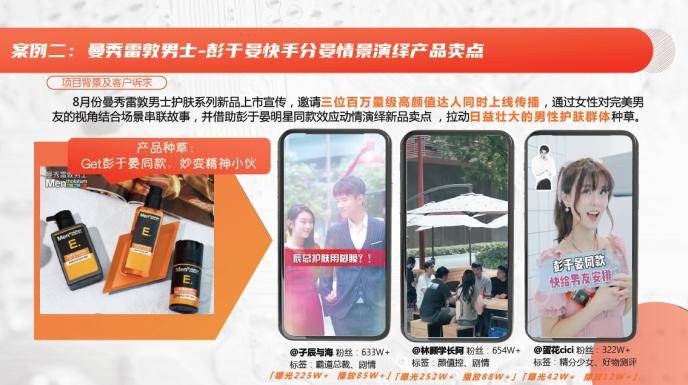 而曼秀雷敦更是攜手快手磁力聚星旗下3位百萬量級(jí)高顏值達(dá)人推出同時(shí)上線傳播,成功為新品造勢(shì),并通過情景劇演繹產(chǎn)品賣點(diǎn),拉動(dòng)男性護(hù)膚群體種草。