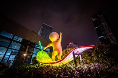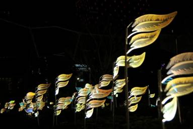 在下沉廣場(chǎng)的綠植區(qū)域,策劃設(shè)計(jì)團(tuán)隊(duì)設(shè)計(jì)了“幻彩羽筆”的燈光裝置,猶如一只只羽毛筆,在燈光變幻間,“書(shū)寫(xiě)”著一則則在天河城發(fā)生的關(guān)于夢(mèng)想生活的故事。