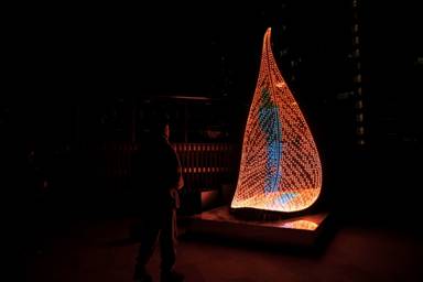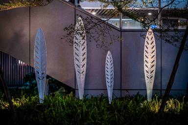 從下沉廣場(chǎng)到高空的廣場(chǎng)天臺(tái)上,以羽毛造型為基礎(chǔ),結(jié)合風(fēng)車(chē)靈感的“風(fēng)之羽”綠化燈光氛圍插件。在微風(fēng)吹拂中緩緩轉(zhuǎn)動(dòng),營(yíng)造如夢(mèng)似幻、靈動(dòng)的休閑區(qū)燈光氛圍效果。