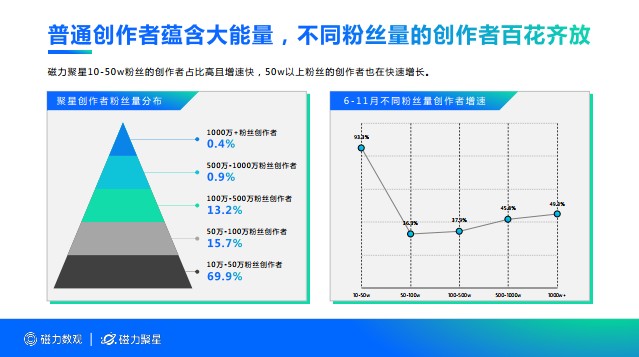 《報(bào)告》顯示,2020年1月到11月,聚星創(chuàng)作者數(shù)量上漲達(dá)181.1%,不同粉絲量級(jí)的創(chuàng)作者數(shù)量均有增長(zhǎng),并覆蓋娛樂(lè)、動(dòng)漫、才藝、政務(wù)等42個(gè)垂類領(lǐng)域,讓不同行業(yè)品牌都能找到目標(biāo)圈層,有更豐富的排列組合方式進(jìn)行選擇,滿足多樣化的營(yíng)銷需求。