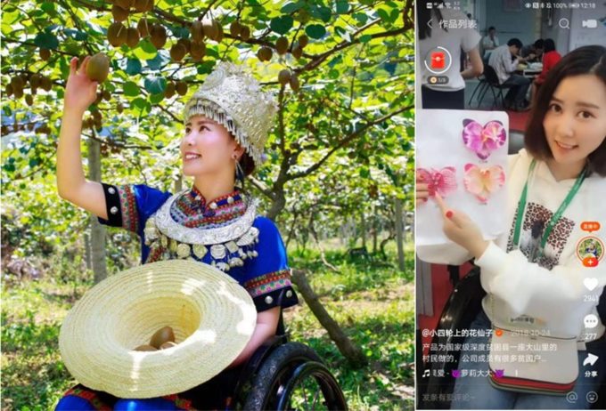 楊淑亭(@小四輪上的花仙子)則展現(xiàn)了殘疾人群體自強(qiáng)不息、捍衛(wèi)尊嚴(yán)的精神。身為高位截癱患者的她,經(jīng)營著箱包、仿真花公司,主銷華南地區(qū)以及亞歐國家,截至2020年9月,累計(jì)帶動(dòng)1291個(gè)建檔立卡貧困戶增收,其中59個(gè)是殘疾人。楊淑亭在快手上直播開店,并同步幫助縣里出售牛奶、蜂蜜、辣椒、竹筍等農(nóng)特產(chǎn)品,累計(jì)銷售1.67萬件商品。