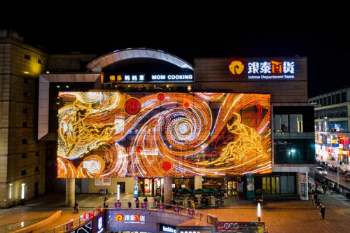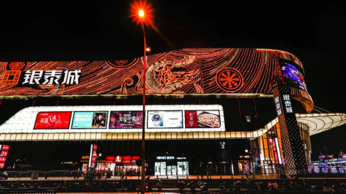 寧波銀泰環(huán)球城是銀泰商業(yè)全國首座環(huán)球城項目,其外立面的面積超2000㎡,是此次項目外立面中面積最大的商場。