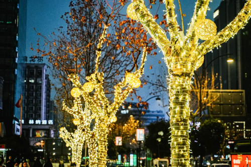 慶春店則選擇了以“HAPPY NEW YEAR”為主題的燈飾發(fā)光裝置。