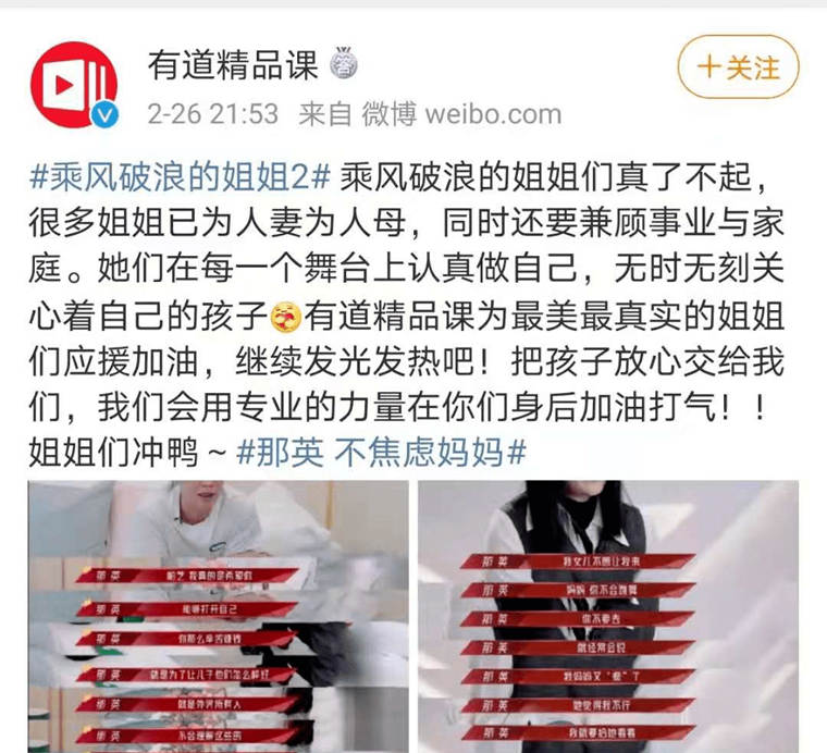 而有道則直到今年,才在大ip領(lǐng)域選擇了《乘風(fēng)破浪的姐姐2》進(jìn)行贊助,顯然,相比競(jìng)品們?nèi)嫜鹤?,以量取勝的打法,有道更希望?shí)現(xiàn)“有一個(gè)算一個(gè)”,核心強(qiáng)調(diào)品牌概念。