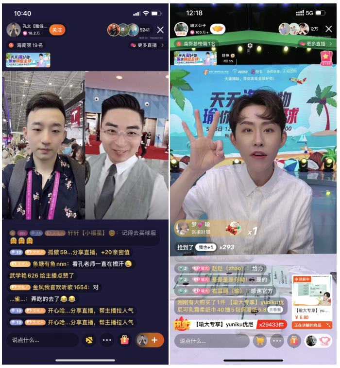 (孔文和海南臺(tái)主持人海躍、瑜大公子在直播嗨逛消博會(huì))