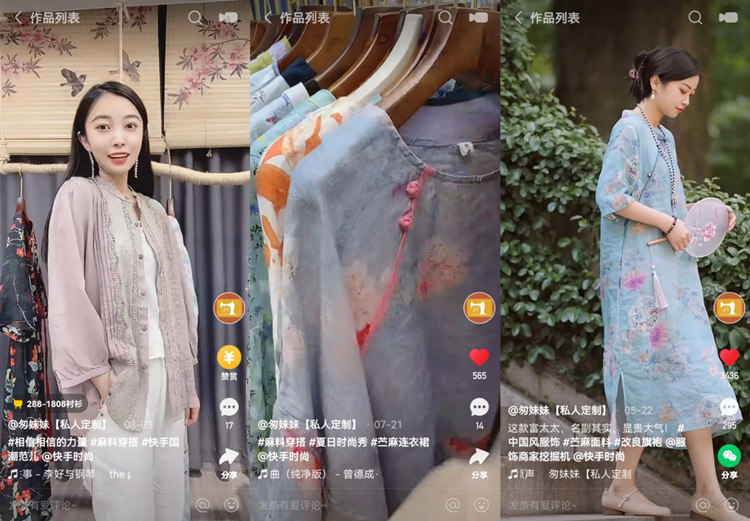 快速成長(zhǎng)的背后,是因?yàn)榇掖艺业搅诉m合自己的鮮明風(fēng)格。事實(shí)上,在今年四月份之前,匆匆主要經(jīng)營(yíng)羊毛衫,生意并沒有太大起色。5月以后,進(jìn)入夏裝銷售季,匆匆便采用苧麻、亞麻等麻料作為自家服飾的主要面料,風(fēng)格是偏日常的國(guó)風(fēng)。匆匆自己平時(shí)就喜歡這種穿衣風(fēng)格,“國(guó)風(fēng)很有藝術(shù)感,我特別喜歡夏天穿得很仙的感覺?!?br>