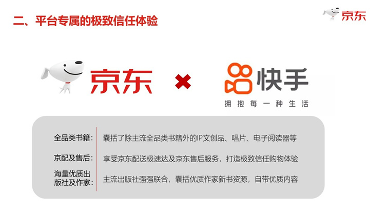 借助京東圖書在品種、物流、售后等方面的賦能,主播們可以為粉絲提供更好的購物體驗,快手也可以進一步夯實“信任電商”的招牌。