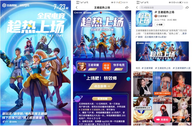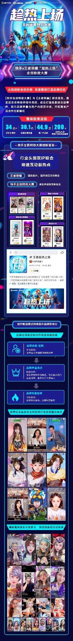 快手合作王者榮耀打造“趁熱上場”全民王者特效大賽,IP聯(lián)合以賽事玩法實現(xiàn)娛樂共創(chuàng)