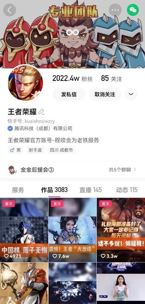 作為中國自研產(chǎn)品的代表之一,《王者榮耀》超出產(chǎn)品本身,在文化合作中不斷創(chuàng)新,遇見敦煌,遇見神鹿,以及剛發(fā)布的遇見胡旋,都在文化創(chuàng)新的領域中探尋更多可能。在快手,《王者榮耀》官方賬號也以超2000萬的粉絲量形成了高影響力私域陣地。