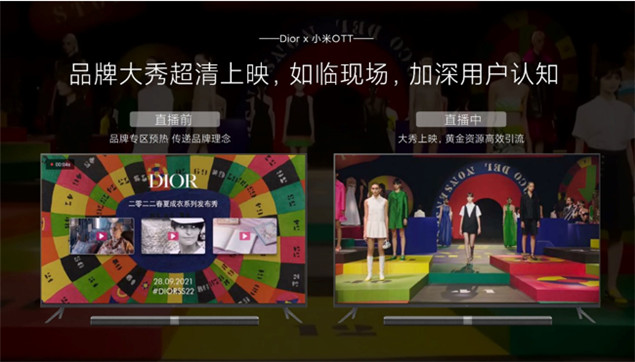 更進(jìn)一步,小米OTT直接把秀場搬上大屏。以迪奧與小米OTT的合作中,品牌大秀超清上映,如臨現(xiàn)場,讓用戶在藝術(shù)感的享受中加深品牌認(rèn)知,打造「無感」?fàn)I銷。