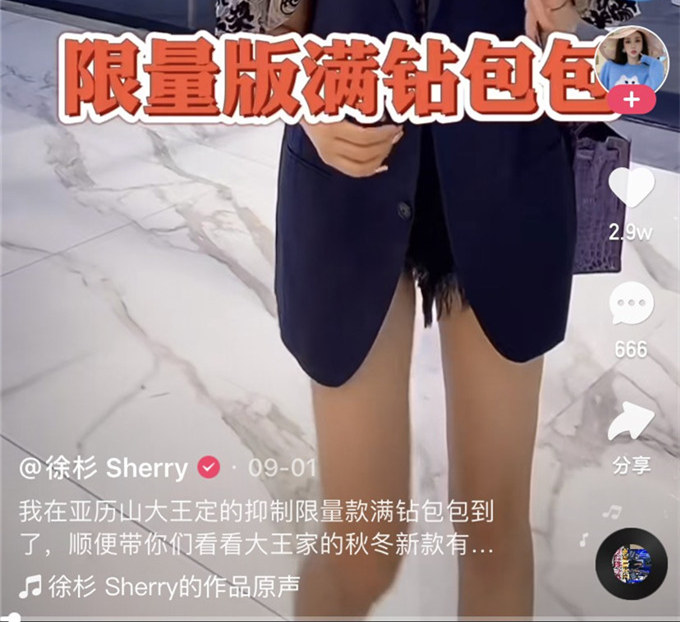 除此之外,“大牌包包怎么選?”“打假奢侈品圈謠言”等一系列優(yōu)質(zhì)短視頻內(nèi)容,也奠定了徐杉“奢侈品女王”的地位,“反正我也得買包,那我就浪費(fèi)就浪費(fèi)了,不行拍個(gè)段子試試吧?!?br>