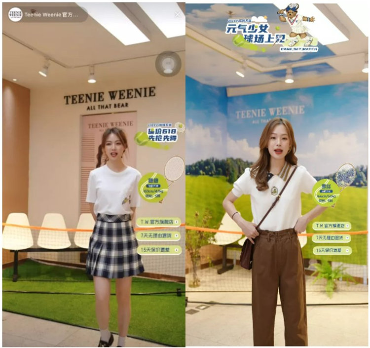 但在直播間賣服裝品牌網(wǎng)球系列的時候,必須為粉絲造夢,將氣氛拉滿。在這個氛圍里,有網(wǎng)球美少女,精致健康的生活,美好的小肌肉線條,沒有汗,沒有狼狽,沒有粘在臉上的碎發(fā),也沒有到處撿球的艱辛,一切都以美出發(fā)。粉絲看后,如果產(chǎn)生“我雖然不會打網(wǎng)球,但是可以做網(wǎng)球場上靚麗的風(fēng)景線”的想法,帶貨就成了一半。