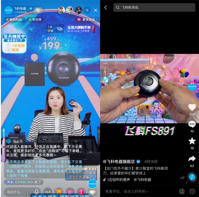 飛科在挑選主推產(chǎn)品時,就采用了以消費(fèi)者為核心的選品策略?!拔覀儼l(fā)現(xiàn)小飛碟在抖音電商平臺上與消費(fèi)者的互動頻次較高,有成為爆品的潛質(zhì),而抖音電商本身驗證爆款是又準(zhǔn)又快的,這就給我們提供了關(guān)鍵的指引?!憋w科抖音渠道運(yùn)營負(fù)責(zé)人韓麗萍告訴「深響」。