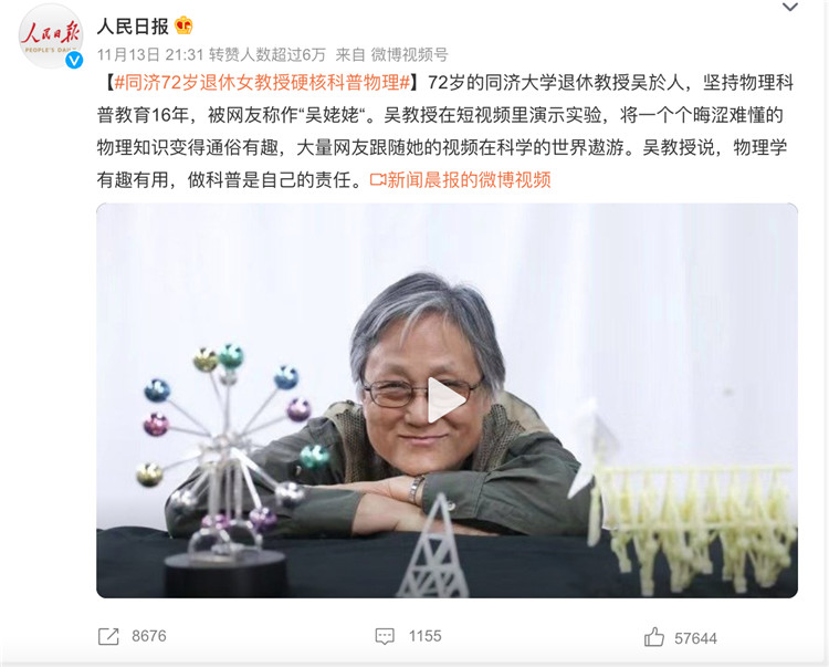 11月15日晚,被人民日報、央視新聞等眾多媒體接連報道、火遍全網(wǎng)的“快手科學(xué)姥姥”完成了她的直播首秀!這場直播活動由快手聯(lián)合上海新聞晨報舉辦,兩位女性物理學(xué)者和大伙兒一塊聊了聊物理學(xué)習(xí)的那些事兒。