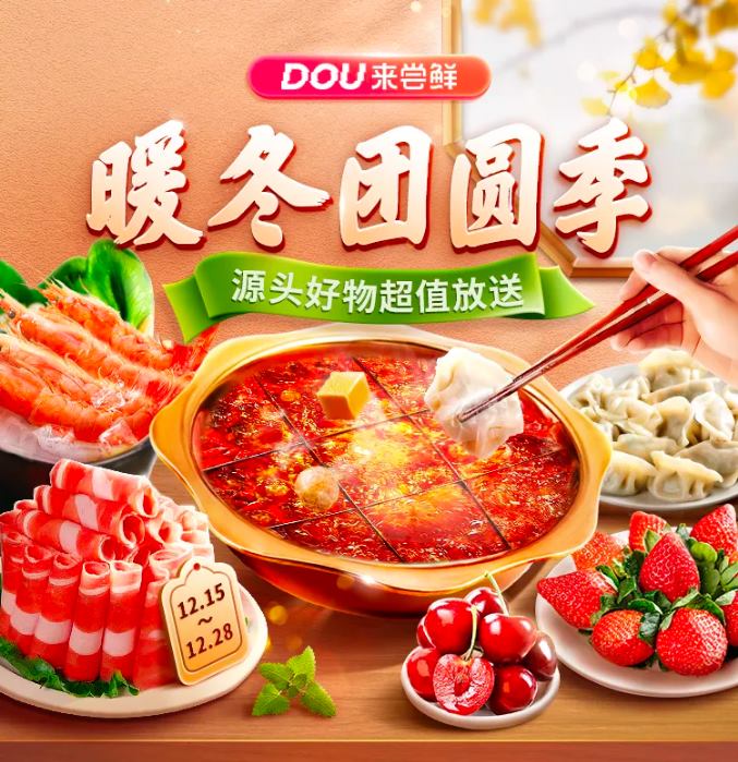 冬至將至,餃子湯圓、牛羊肉、車?yán)遄?、草莓、橙子等食物走俏?strong>為助力商家抓住年末黃金檔口,抖音電商將于12月15日至12月28日,啟動(dòng)「DOU來嘗鮮」活動(dòng),通過「冬至品類日」、「短視頻話題挑戰(zhàn)賽」、行業(yè)重點(diǎn)直播間、作者任務(wù)等玩法,給到商家、達(dá)人豐富的資源扶持,助力生鮮行業(yè)商家實(shí)現(xiàn)年底生意增長(zhǎng)。