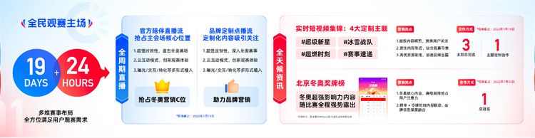 本屆冬奧會(huì)與春節(jié)雙節(jié)點(diǎn)無(wú)縫銜接,更多營(yíng)銷(xiāo)機(jī)遇隨之而來(lái)。近日,快手磁力引擎發(fā)布《2022北京冬奧會(huì)招商全景圖》,希望能夠與眾多合作伙伴一起,利用平臺(tái)資源,打造雙S+級(jí)別項(xiàng)目,承接CNY熱度引爆冬奧氛圍,以六大產(chǎn)品矩陣全流量聚合和全面化布局,為品牌提供高適配、高回報(bào)的冬奧營(yíng)銷(xiāo)路徑。
