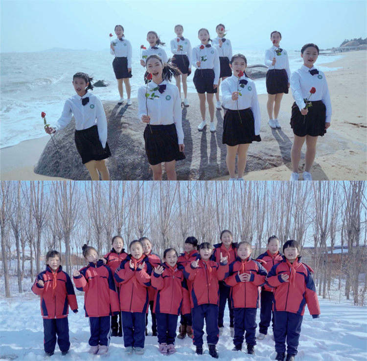 除了彝族的少年合唱團(tuán),晚會上,另外兩個合唱團(tuán)@村里的孩兒與@廈門六中合唱團(tuán)也在連屏互動下,跨越山海相遇,合作演唱了一首《送我一朵小紅花》。一邊是雪鄉(xiāng),一邊是海浪,孩子們的歌聲跨越3170公里的距離完美相融,最空靈純凈的少年人歌聲與溫暖勵志的歌詞給觀眾帶來心靈的撫慰。