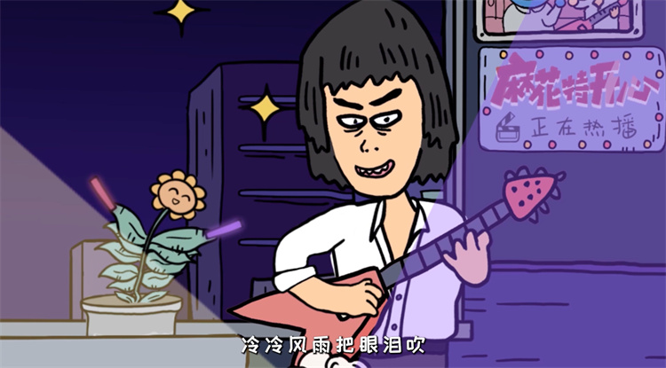 優(yōu)酷侯三迷領(lǐng)銜出演,將「失戀、社恐、過勞」年輕人面對的三大煩惱一一還原,而在每個(gè)陷入 emo 的時(shí)刻,新褲子樂隊(duì)都會(huì)攜經(jīng)典曲目上演反轉(zhuǎn)劇情,與侯三迷同框出鏡,用音樂傳遞快樂。盡管已走過 25 年的新褲子樂隊(duì)本身并不年輕,但無論是廣為傳唱的「你你你你要跳舞嗎」,還是柔情的《你都忘了你有多美》,他們歌曲中的熱情與瀟灑,擁有一種永遠(yuǎn)青春的姿態(tài),不僅抓住了年輕人的心,同時(shí)也給予這代人積極向上的能量。生動(dòng)的動(dòng)畫演繹,匹配發(fā)人深省的歌詞,「新酷子」發(fā)揮雙方的優(yōu)勢,從反轉(zhuǎn)小劇場再到最后的「春晚」演出,為年輕人解開 emo 情緒的束縛。