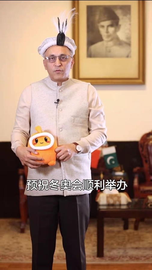 在眾多參與此次冬奧祝福活動的外國駐華大使中,巴基斯坦駐華大使莫因·哈克抱著快手吉祥物“小六”出鏡,預(yù)祝冬奧會順利舉辦,取得圓滿成功。特立尼達和多巴哥華裔駐華大使劉娜則講著一口標準的普通話,喊出“一起向未來,北京加油”的口號。