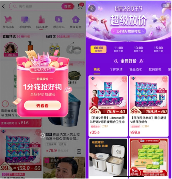 在傳統(tǒng)線下零售場景中,38節(jié)營銷節(jié)點本就是女性護理品牌的必爭之地,本次「抖音38節(jié)」個護家清鮮花行業(yè)也將女性護理品類作為重點扶持對象,從貨品、流量等維度予以扶持,不僅結(jié)合抖音電商興趣好物特點,推出平臺專屬組合貨品;還延長品牌旗艦店自播時間,增加福袋、秒殺等互動玩法,著力提升直播間互動及轉(zhuǎn)化。