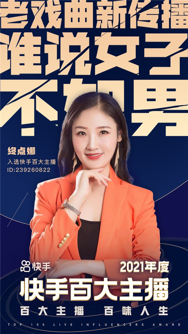 而在成為更好的自己的道路上,傅娜娜也憑借著突出的表現(xiàn)力、內(nèi)容力、凝聚力,在近期的快手主播評估中脫穎而出,入圍2021年度“快手百大主播”。對傅娜娜而言,獲評“百大”是她沒有想到的意外之喜,在驚訝之余,她更堅定了用快手平臺弘揚傳統(tǒng)戲曲文化的決心。談及未來,傅娜娜表示會進一步規(guī)劃自己才藝方面的直播,并堅持推動戲曲傳播,“戲曲不是一家之長,而是百花齊放,要通過我們的展示,讓更多觀眾喜歡戲曲?!?/span>
