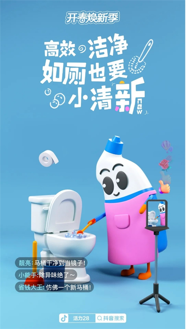 為吸引用戶關(guān)注興趣,「開(kāi)春煥新季」早早地備齊了可愛(ài)感爆棚的創(chuàng)意海報(bào),通過(guò)擬人化的高萌形象,展示出個(gè)護(hù)家清鮮花產(chǎn)品日常高頻使用場(chǎng)景?!讣s會(huì)新肌妝」「如廁也要小清新」「開(kāi)啟發(fā)絲新靈動(dòng)」……自帶賣點(diǎn)的創(chuàng)意文案,將「開(kāi)春煥新」落到了具象的消費(fèi)場(chǎng)景,喚醒了用戶沉睡的消費(fèi)興趣與需求。