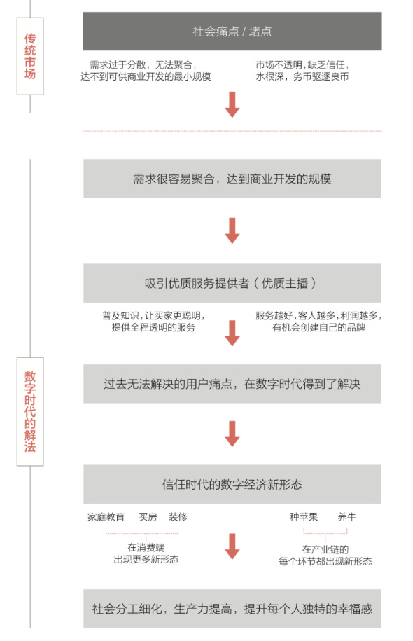 信息弱勢方對信息的需求催生出了各行各業(yè)提供信息的主播,直播自帶的監(jiān)督機制又讓本處于“黑匣子”之中的中間環(huán)節(jié)變得透明。