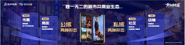 2021年10月,快手磁力引擎首次提出“新市井商業(yè)”生態(tài)概念,將快手產(chǎn)品體系中公域的發(fā)現(xiàn)頁、精選頁與私域的關(guān)注頁、主頁四大形態(tài),依次比喻為線下場景中的市集、商街、社區(qū)和店鋪。