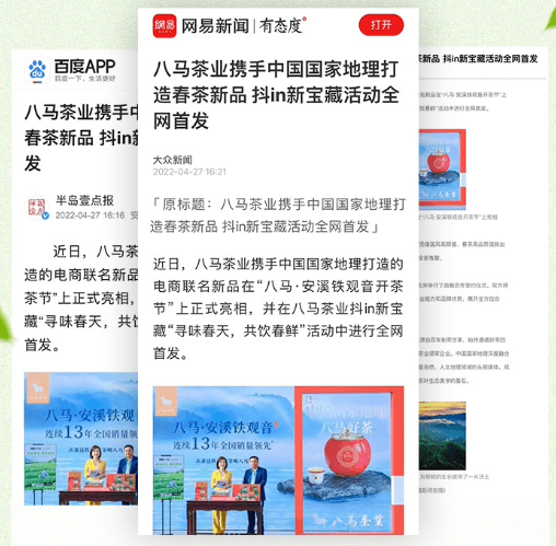 在如今的電商行業(yè)內(nèi),“抖in新寶藏”通過抖音電商的通力運營,早已成為一個兼具粉絲規(guī)模與認知規(guī)模的IP策源地。通俗講,正如科技產(chǎn)品要在CES首發(fā)才地道,IP產(chǎn)品或品牌IP也漸漸在“抖in新寶藏”形成首發(fā)習慣,例如八馬茶業(yè)攜手中國國家地理打造的春茶新品,便是在此首發(fā)。