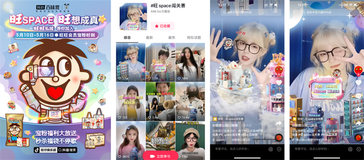 極具國民度的品牌旺旺在抖音啟動了“旺space闖關賽”貼紙小游戲互動,并別出心裁的將很多人“童年記憶”系列的旺旺logo和爆款產(chǎn)品等作為主要視覺元素,設計成游戲場景和過關道具。在滿滿的情懷氛圍感中,近600w人次的用戶進行了簡單的游戲闖關,并被自然激發(fā)起對旺旺品牌的感知和興趣。