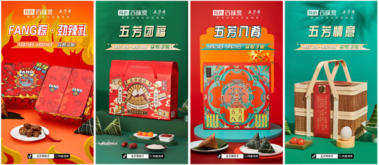 五芳齋別具匠心的結(jié)合端午時點,不僅與抖in百味賞聯(lián)合開啟#這粽子第一次見 話題,鼓勵用戶分享各種口味的粽子與花式吃法,引發(fā)抖音站內(nèi)對于粽子的關注和討論。五芳齋還接連推出數(shù)款禮盒,如限量版“FANG粽·勁辣禮”和“林述巍聯(lián)名款五芳八肴禮盒”,抖音用戶定制款“五芳團福禮盒”等,成功打造五芳齋端午“網(wǎng)紅粽”矩陣。