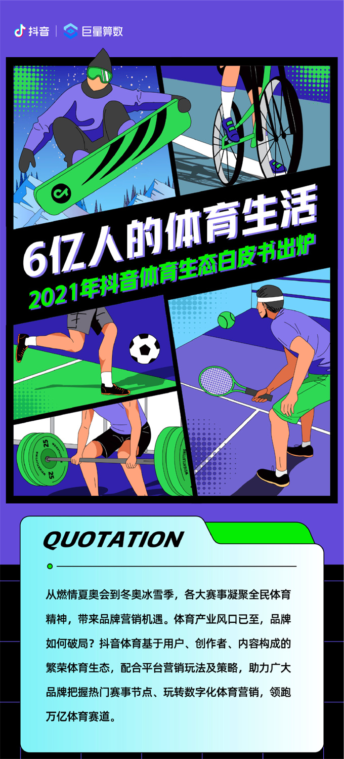 6月21日,抖音體育與巨量算數(shù)聯(lián)合發(fā)布《2021年抖音體育生態(tài)白皮書》(以下簡稱《白皮書》),基于站內(nèi)數(shù)據(jù)洞察6億人的體育生活,圍繞抖音生態(tài)中的創(chuàng)作者、內(nèi)容和用戶三個維度拆解平臺的營銷玩法和策略,為品牌提供趨勢參考和增長指南。